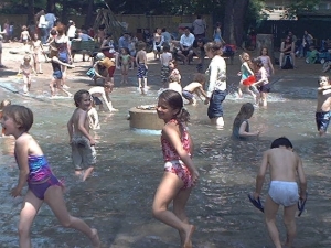 That’s a big change for the park. At Dufferin Grove, the wading pool staff have always alternated with each other, doing many of the other park tasks as well – preparing food for the cafe, serving at the weekly community suppers, fixing broken slats on the park benches, scheduling summer camp pizza visits, setting up farmers for the Thursday market, working with the garden volunteers, keeping the sandpit safe and fun...on and on. The variety of tasks and the way the activities build on one another is one reason why the park has attracted such a range of interesting and capable part- time workers over the years.