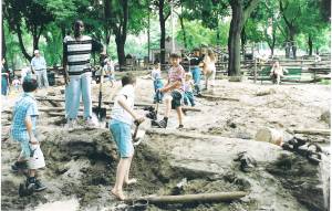 There’s been some concern about wasting water when kids play in this way. And it would certainly be wonderful to make the kids’ little rivers available to the park trees rather than running that water down the sewer. All suggestions of how to divert the sand pit water are welcome: please bring them to the park staff. Maybe it’s also possible to think of a way of using some of the wading pool water to water the trees instead of draining that huge amount of water into the sewer at the end of every day. Ideas? Practical help? A challenge for this summer...