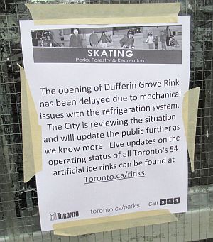 At Dufferin Rink, all requests for details about the nature of the “mechanical issues” were refused. (Why?) On Dec.6, the compressors were finally turned on. The rink finally opened for the season on Dec.11.