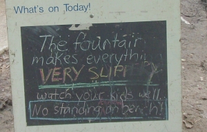 This problem is not dire. It's more of a trade-off -- the older wading pools have a rougher cement surface, so it doesn't look as nice, and kids can scrape themselves if they fall. But they don't slip. With the new pool, staff say they have had to do a number of injury incidence reports since the renovation, because kids slip on the pool surface and bang themselves. These injuries so far have not been serious. However, nobody likes to fall and bang their head.