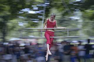 Featured in the Dufferin Grove Park program will be the Toronto premiere of Julia Aplin's Nice Cuppa Tea, a work created for Company Blonde for Ottawa's Dusk Dances in 2002; Ayelen Liberona's exquisite 2002 aerial work, Falling; Danny Grossman Dance Company performing Grossman's classic work, Bella; Victor Quijada's Montreal hip hop sensation, Rubberbandance Group, returning with Mi Verano, the hit of last year's event; and an intergrated modern dance commission for Spirit Synott, a dancer who uses a wheelchair, and Perry Augustine by choreographer Rachel Gorman.