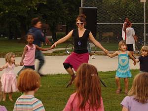 After supper there’s dancing with Eroca Nicols and the kids from her summer dance classes. Special guest: a teacher of traditional Arabic circle dancing.Then Park DJ Ted Carlisle will play disco, soul, funk, and old-school hip hop. On the grass beside the basketball court.