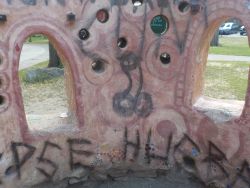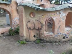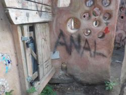 The community cob kitchen was built with the help of almost 500 community volunteers over three months (in 2005), including children. It was plumbed and wired by city electricians and plumbers. It should not be allowed to deteriorate to the point where it has to be demolished.