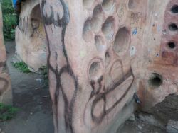 major plastering repairs happened this afternoon, involving children as well as adults. If the city's graffiti removal staff can help by removing (sanding off) the paint that they used to paint over the graffiti, the lime wash can be applied instead.