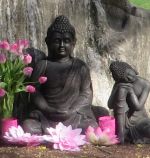 At the beginning of May, a little Buddhist shrine appeared at the base of the rock that's at the centre of the Jenna Morrison reflexology footpath at the park. There was no explanation, but the two statues, the lotus flowers, candles and fresh tulips showed that the footpath is a kind of public memorial. Most such installations in Toronto parks are statues of prominent people or sculptures memorializing events like a war or a revolution. This one is different: read the footpath story here.