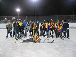 Are you a wannabe shinny hockey player? Dufferin Rink offers an hour of protected drop-in shinny hockey time for real beginners (we call them Level One, which means you might not even be that good at skating backwards), Wednesday nights from 10:00pm - 11:00pm. None of the Dufferin Rink hot shots are allowed on the ice during that time. No need to register, and it's free, with a staff resource person on the ice who will pass to you, help you with drills, and give you pointers if you want. Or you can just practice as you choose. Space is limited each night to 30 players, and is on a first come first serve basis. For more information, e-mail outdoor.shinny@gmail.com or call the park at 416 392-0913. Ask for Ginger or Marty.